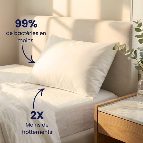 Notre taie d'oreiller enrichie au zinc aide à maintenir une peau du visage plus saine et purifiée nuit après nuit.